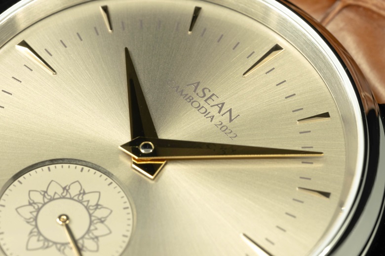 The dial design was inspired by the lotus flower symbol from Cambodia’s ASEAN Chairmanship logo which was chosen to represent purity and strength.