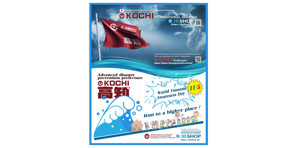 TOKYO–(BUSINESS WIRE)–To mark November 5, World Tsunami Awareness Day, we would like to introduce JB SHOP ( https://jbshop.jp/en.html ), the online specialty store for disaster risk reduction and management products run by Trustia Corporation (based in Tokyo’s Taito Ward), and KOCHI BOSAI ( https://japan-bosai.jp/kochi/en.html ), a site dedicated to disaster risk reduction and management. Both sites allow customers to easily source excellent disaster risk reduction and management supplies from Japan, and specifically Kochi Prefecture, even from overseas.