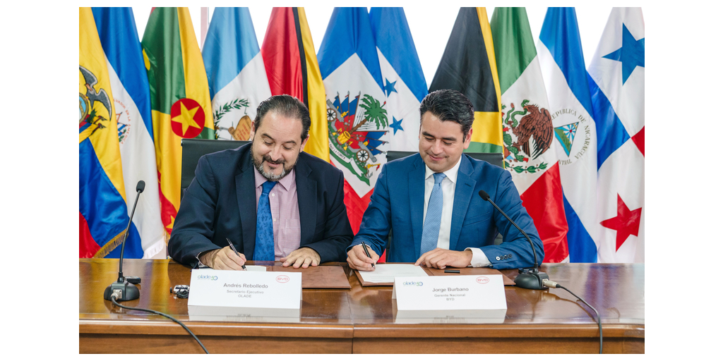 OLADE, under the leadership of its Executive Secretary, Andrés Rebolledo Smitmans, and BYD, represented by Jorge Burbano, Country Manager of BYD Ecuador, have signed this agreement, solidifying their joint commitment to promoting electric vehicles and accelerating energy transitions in the region.