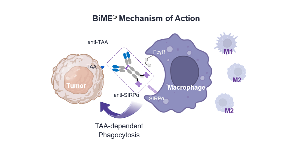 Elpiscience is a privately held, clinical-stage biopharmaceutical company dedicated to developing next-generation immuno-oncology therapies for cancer patients worldwide. Their Bispecific Macrophage Engager Platform (BiME®) is anti-tumor associated antigen (TAA) and anti-signal-regulatory protein α (SIRPα) bispecific antibody-based platform to activate Tumor Associated Macrophage (TAM) phagocytosis killing towards specific TAA expressing tumor cells. BiME® shows highly potent phagocytosis due to engagement of the Fc receptor on TAM and the tumor cells via TAA and SIRPα, and blockade of CD47-SIRPα “don’t eat me” signaling1. This platform is utilized for ES019, an anti-PD-L1/SIRPα bispecific antibody.