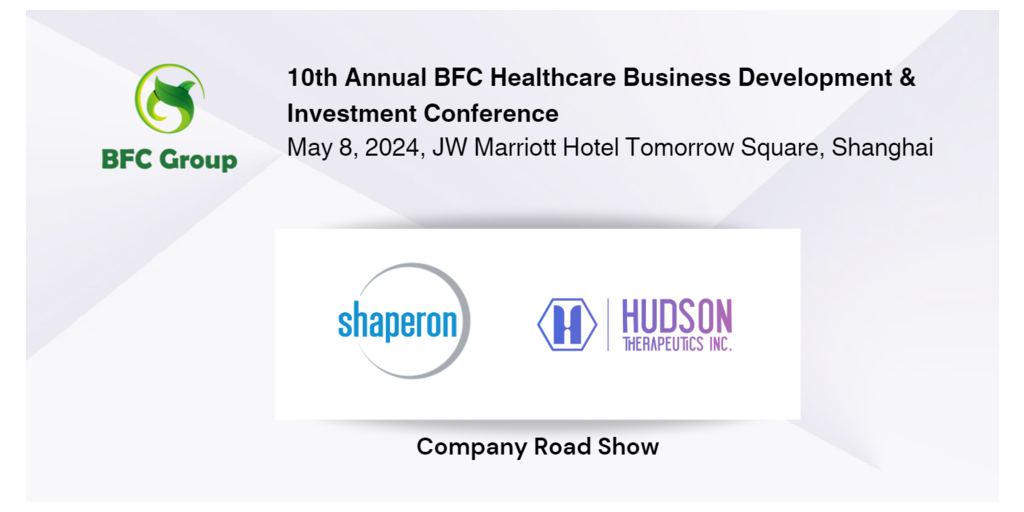 Shaperon to Conduct Strategic Partnering and Institutional Investor Meetings at the 10th Annual BFC Healthcare Business Development & Investment Conference in Shanghai