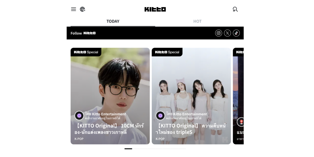 KITTO will strategically enrich visual treats for users and extend their usage duration by offering diversified content that incorporates the multifaceted interests of local users. Moreover, across numerous SNS channels, KITTO will actively engage with the younger population in Thailand, who are sensitive to entertainment and trends, through interactive content delivery, in addition to information sharing.