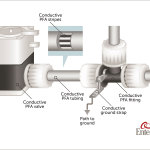 Stainless steel fluid management systems traditionally used to transport solvents and other flammable chemicals utilized in semiconductor manufacturing cannot meet today�s increased requirements for ultra low metal impurities. As a result, manufacturers of advanced technology chips are moving away from stainless steel systems to fluoropolymer (PFA) systems. While PFA systems reduce metal contamination introduced by the stainless steel systems, they create a new challenge associated with electrostatic discharge, since PFA is a non-conductive electrical insulator.