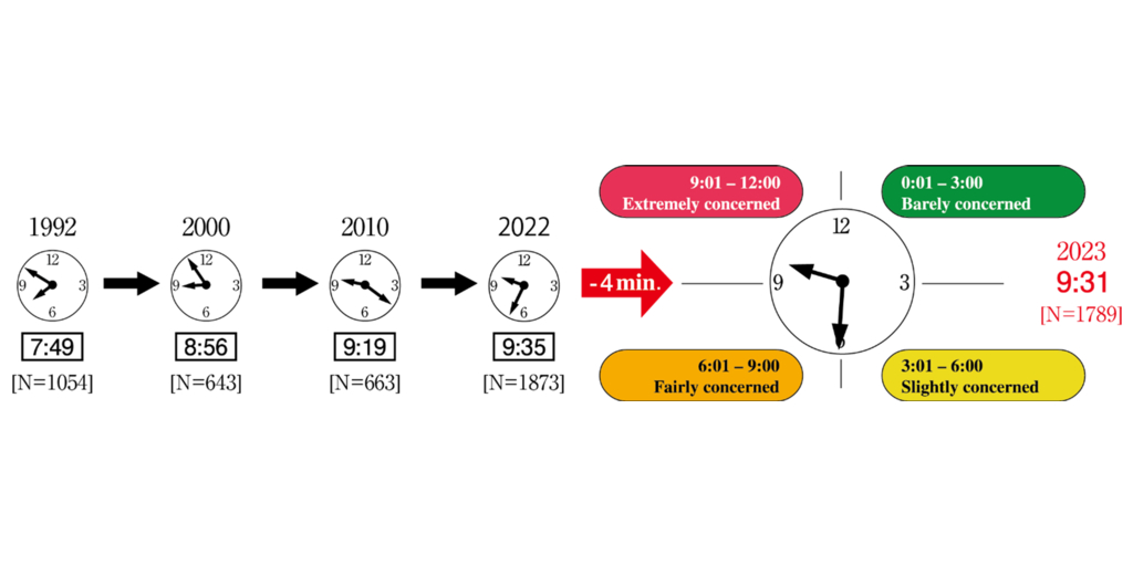- The time on the Environmental Doomsday Clock has turned back for three consecutive years since 2021, striking 9:31 in 2023.