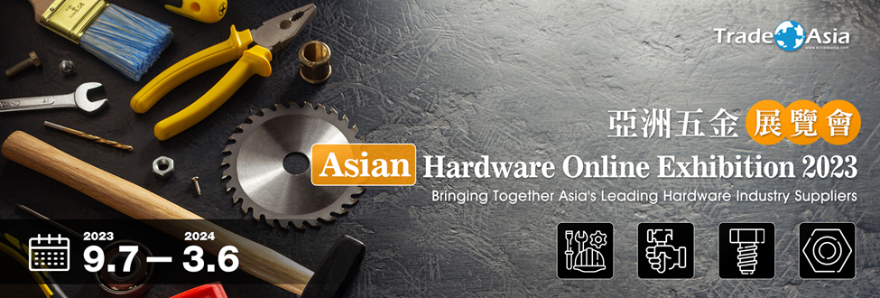 TradeAsia, the organizer of the Asian Hardware Online Exhibition (AsianHardware 2023), invited dozens of Taiwanese suppliers of hardware products to participate. The top-notch brands include SCANO INDUSTRIAL, KINGDOM ABRASIVE, KCS ENTERPRISE, ASCCO INTERNATIONAL, TOWER POPULAR IND, JERN YAO ENTERPRISES, AN JARL ENTERPRISE, MASTER RESOURCE, JINTAY, A-BELT-LIN INDUSTRIAL, CHUN CHENG PLASTICS, AMEX HARDWARE, CASEMATE PLASTICS INDUSTRIES are all gearing up to showcase their products.