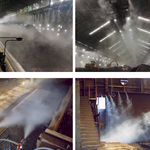 Taking a different approach, IKEUCHI has developed two types of systems to offer more effective and less costly dust control solutions. One is a “soft fog system” that sprays fine and soft fog to capture airborne dust particles and suppress them down by gravity. The second is a “high-velocity fog system” that sprays a large volume of fine fog at high velocity to suppress dust from rising up and dispersing. Both systems are relatively easy to install, requiring a customer to supply only compressed air and water.