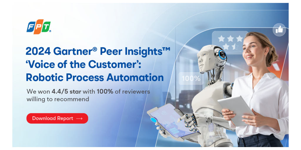 FPT Software Recognized With 100 Percent Willingness to Recommend Rate in 2024 Gartner® Peer Insights™ ‘Voice of the Customer’: Robotic Process Automation