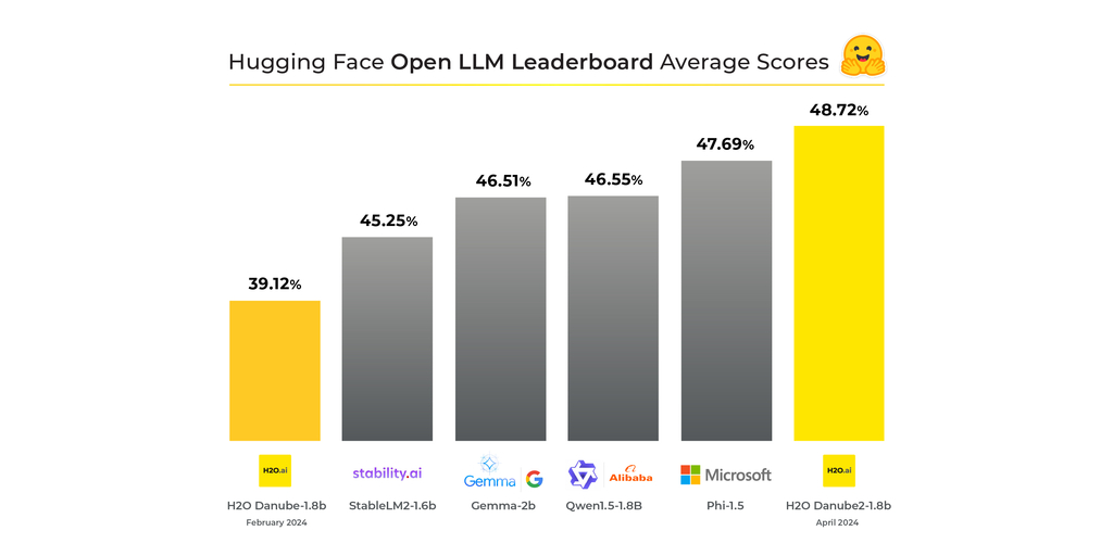 MOUNTAIN VIEW, Calif.–(BUSINESS WIRE)–H2O.ai, the open source leader in Generative AI and machine learning, is proud to announce that its latest open-weights (Apache v2.0) small language model, H2O-Danube2-1.8B, has secured the top position on the Hugging Face Open LLM Leaderboard for the <2B range, even surpassing the much larger Gemma-2B model from Google in the 2.5B parameter category. This achievement underscores H2O.ai’s commitment to advancing AI accessibility and performance through innovative open-source solutions.