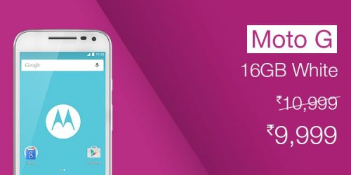 Now buy Moto G 3rd Generation (Black/White, 16GB) for just Rs.9,999/- As part of the Hello Moto Special offer Amazon India is offering Flat Rs.1,000/- on Moto G 3rd Generation Smartphones.