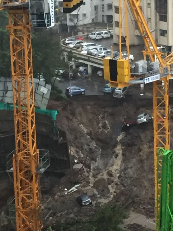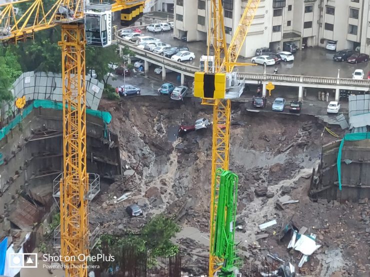Dosti was making a building and their piling gave up. They had dug almost 30-35 feet of ground and due to heavy rains ground created lot of pressure on piling pillars.