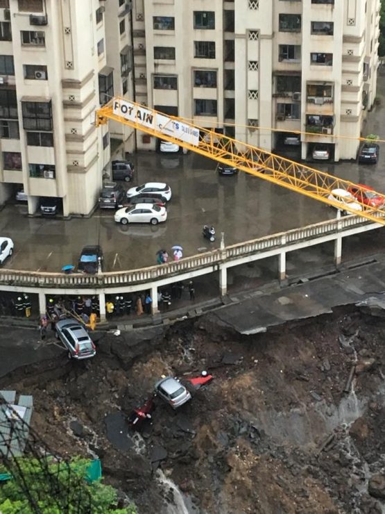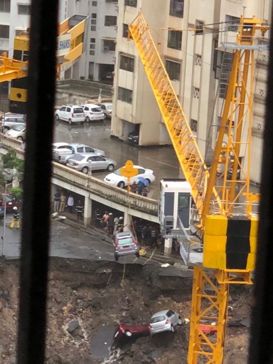 High rise building, premises road caves in at lloyds estate c wind and d wing Antop Hill near Vidya lankar college Wadala East.. over 15 20 cars inside. Residents trapped inside the building not able to come out… officials and fire brigade reached spot to vacate and help people out…