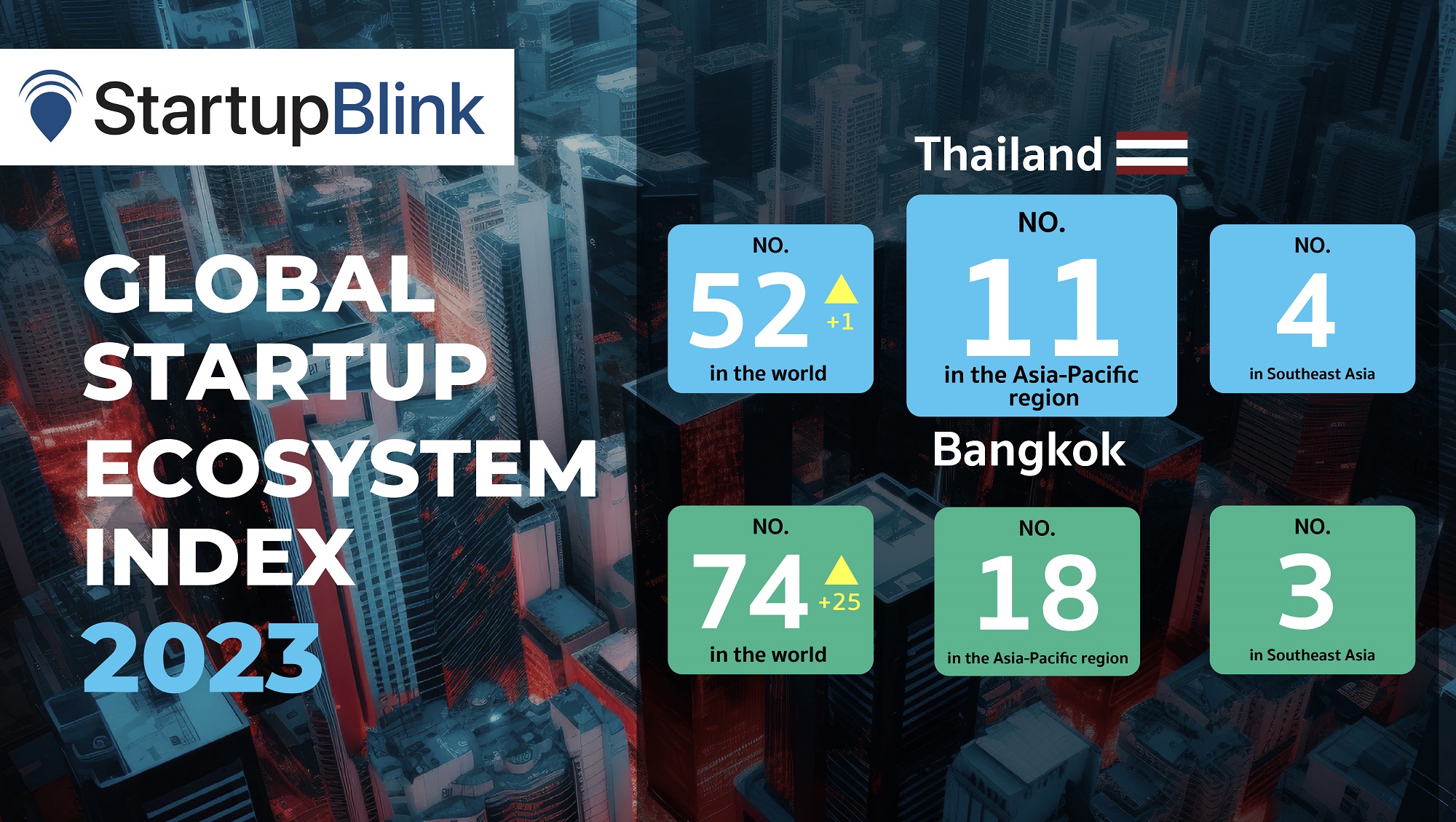 The National Innovation Agency (Public Organization) (NIA), has revealed Thailand’s Global Startup Ecosystem Index ranking for 2023 by StartupBlink, a comprehensive startup ecosystem map and research center. The index ranked 100 countries and 1,000 cities with the best startup ecosystems worldwide and Thailand is ranked 52nd globally, rising by one ranking over the previous year. Meanwhile, Bangkok has surged to 74th place globally among the top 1,000 cities with the best startup ecosystems, making an impressive leap of 25 places and surpassing neighboring cities like Kuala Lumpur in Malaysia, which is ranked 3rd in ASEAN. Additionally, Chiang Mai, Phuket, and Pattaya are among the top 1,000 cities with the best startup ecosystems. Notably, they are highlighted by their remarkable performance in the transportation industry, securing the 43rd global ranking. This underscores the growth of Thailand’s startup ecosystem.