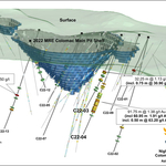 2022 exploration drilling at Colomac Main is focused on the northern (Zones 1.0 and 1.5) and southern (Zone 3.5) areas of the deposit. The Company believes there is a high probability of expanding the potential open-pit mineralization in these areas. Drilling to-date has encountered wide intervals of mineralization, hosted in smoky quartz veining in quartz diorite. In particular, drill holes C22-03 and C22-04 (mineralization started at depth below surface of 85 m) intersected mineralization outside of the 2022 MRE1 pit shells, demonstrating continuity of near-surface mineralization to the north. Please refer to Figures 1, 3, and 4 for the Colomac Main Deposit Zone 1.0 Isometric View, Colomac Centre Plan View, and Colomac Main Deposit Section View, respectively.