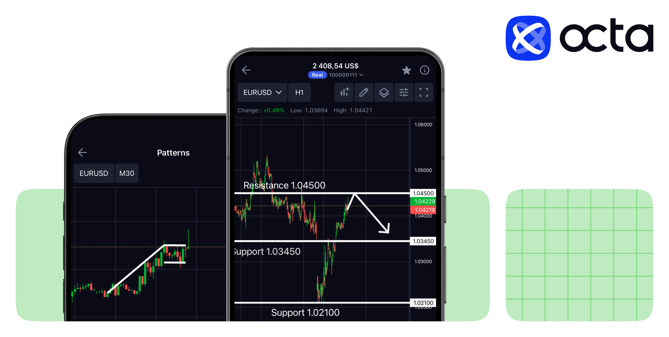 The tool can be used in synergy with another OctaTrader’s signature feature, the analytics hub Space. The Space feed embedded in the Octa app provides expert-curated insights and educational articles that help traders assess market fluctuations and gain relevant financial knowledge. As such, Space offers human expertise, while AI Pattern Recognition brings deep machine knowledge to the table. The synergy of these two tools allows traders to spot relevant patterns—and then validate decisions by deep diving into the financial theory, if necessary.