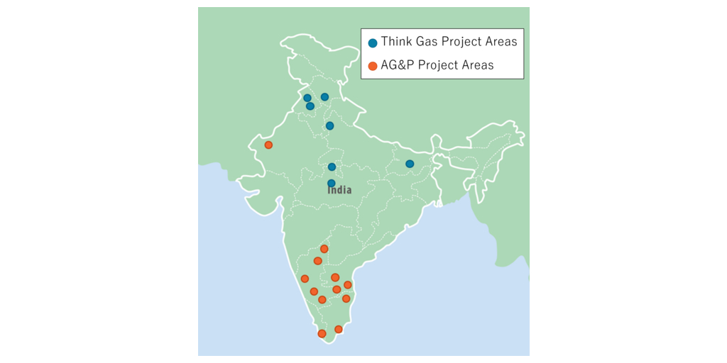 This investment allows AG&P LNG Marketing to expand its gas distribution coverage in India. Since 2021, the company has been developing CGD business in twelve geographical areas1 (GAs) under the brand name AGP Pratham, primarily in the suburbs of southern India. With this new investment, AG&P LNG Marketing will also develop seven additional GAs under the brand name THINK Gas2 in the urban areas of north and central India. The total area of these nineteen GAs represents approximately 320,000 km2 or 10% of the country (comparable to approximately 90% of Japan’s land).