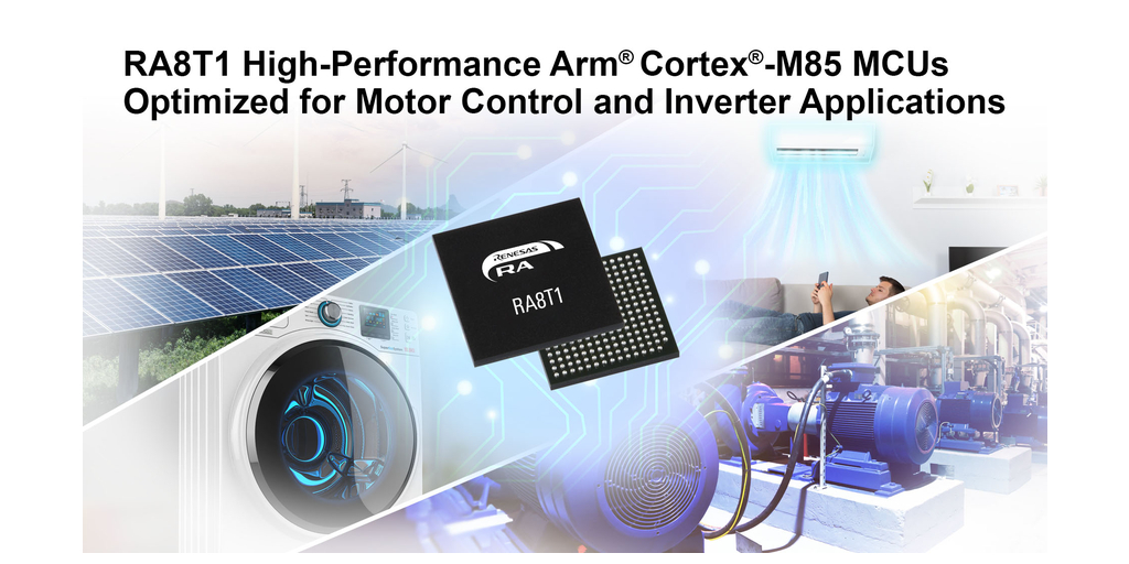 TOKYO–(BUSINESS WIRE)–#MCU–Renesas Electronics Corporation (TSE:6723), a premier supplier of advanced semiconductor solutions, today introduced the RA8T1 microcontroller (MCU) group based on the Arm® Cortex®-M85 processor. RA8T1 devices address real-time control of motors, power supplies and other products commonly used in industrial and building automation, as well as smart homes.