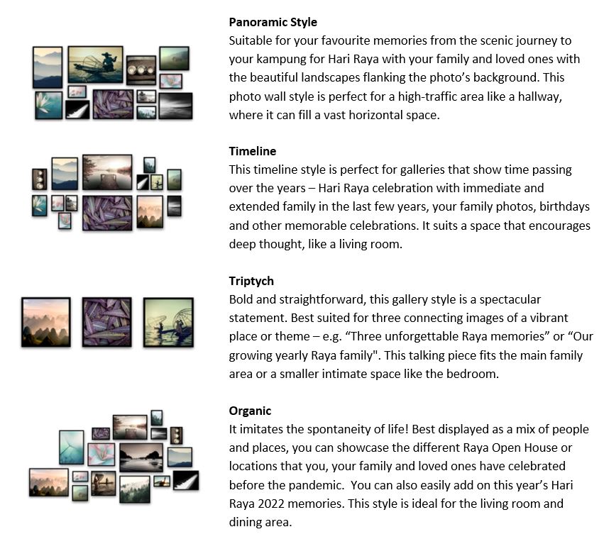Whenever we visit any homes during Raya, the hanging pictures on our neighbours, friends or family’s wall often pique our curiosity. We can see the big smiles captured at that moment worth remembering. These memories are profound and have a long-lasting impact. It is easier to share these memories by hanging up the framed pictures with the 3M� Command� Picture Hanging Strips, which work on various wall surfaces. The best part is that with no nails or screws involved, these strips can carry up to 7.2kg of the frame. With no markings on the wall, you can transform that empty wall into a wall of memories showing those finest moments during this Raya and rearrange it again after Raya to include this year’s best and most fun memories!