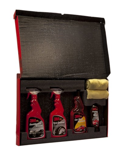 1.This box includes: 1 Car Wash Shampoo (500 ml), 1 Tyre Dresser (500 ml), 1 Dashboard Dresser (500 ml), 1 Liquid Wax (200 ml) and 1 Microfiber Cloth