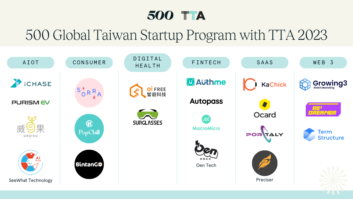 “We’re impressed by the talent of this year’s cohort. From our observation, Taiwan has such a vibrant startup ecosystem with a wealth of talented entrepreneurs. This year’s group of startups have already shown exciting potential. We’re honored to help them grow and make impact in their fields,” said Tony Wang, Managing Partner at 500 Global.