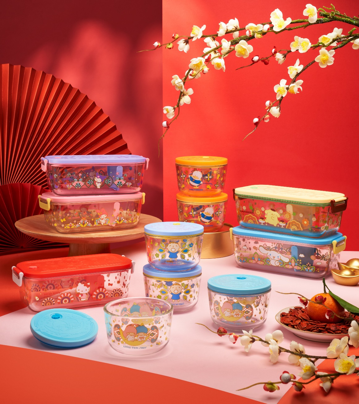 | 1. Bright & Blessed New Year Set This vibrant red box set includes four bright and colourful Best Wishes Leakproof Glass Container styles and two types of Lai See Packets featuring Hello Kitty and Minna no T?b? to wish one and all a lucky and prosperous Year of the Rabbit! The set includes the following four selected Best Wishes Leakproof Glass Container styles: | 2. Abundant Fortune New Year Set This stylish purple box set includes four pastel pink and blue Best Wishes Leakproof Glass Container styles and two types of Lai See Packets featuring Hello Kitty and Minna no T?b? to share abundant blessings over the festive season. The set includes the following four selected Best Wishes Leakproof Glass Container styles: |