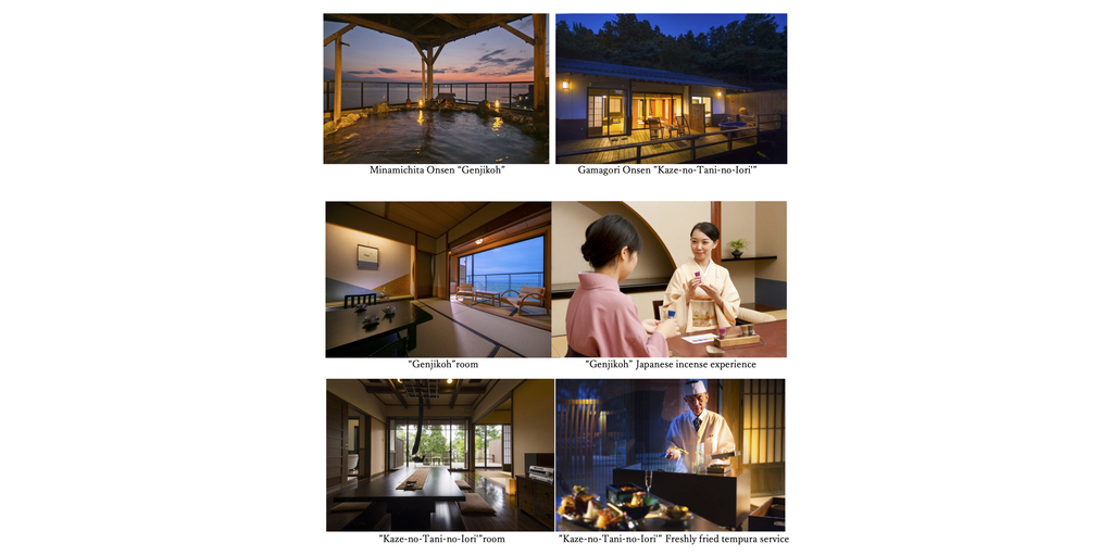 MINAMICHITA, Japan & GAMAGORI, Japan–(BUSINESS WIRE)–Kaiei Ryokans started offering 2-day sightseeing accommodation plans. A private car with a driver will take you to your favorite spots and hidden gems in each area. The new plan is limited to one group per day at each facility, Genjikoh in Minamichita Onsen, Aichi Prefecture, and Kaze-no-Tani-no-Iori in Gamagori Onsen, Aichi Prefecture, for one night with a private car guided by an anniversary concierge.