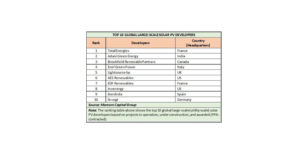 Mercom Capital Group, a reputable clean energy communications and research firm, has unveiled its report outlining the top ten leading global large-scale solar PV developers based on data compiled from July 2022 to June 2023. It includes data of projects with more than 1 MW capacity encompassing operational capacity, projects under construction and projects with awarded Power Purchase Agreement (PPA).