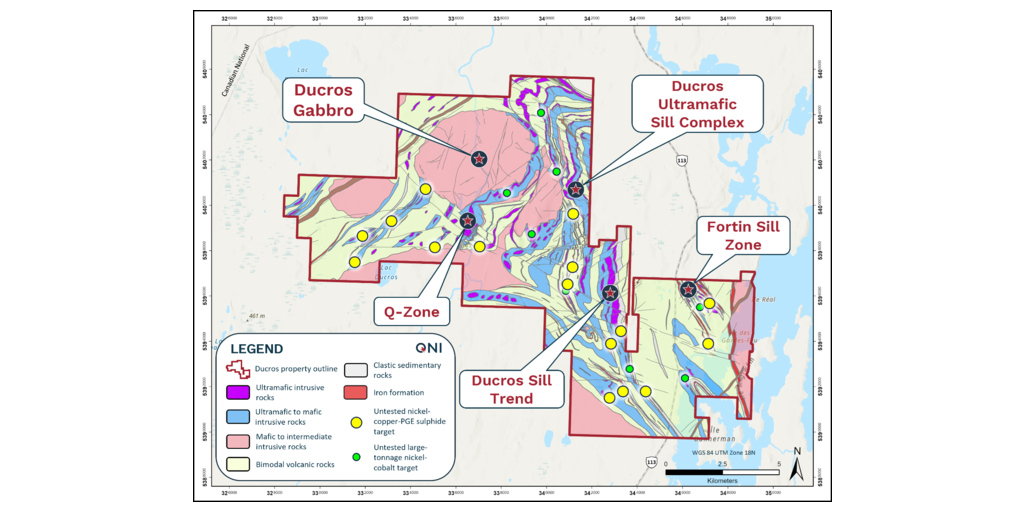 - Numerous new nickel sulphide targets generated through the work across the Ducros property, including several that occur adjacent to the Fortin Sill Zone, the recently discovered Q-Zone and along strike from the Ducros Sill Trend;