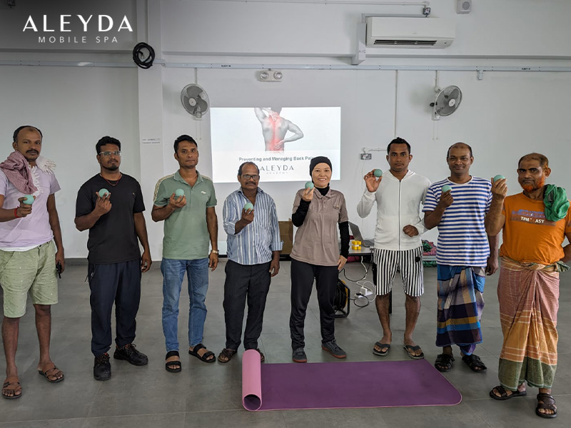 Aleyda has been committed to workplace wellness for over a decade. The company recently started MIM to promote health and well-being among the migrant worker community in Singapore. Offering practical training in ergonomics, self-massage techniques, and corrective exercises, the workshops include body-massage fundamentals that are easy to learn and apply, even in a work setting or at home.