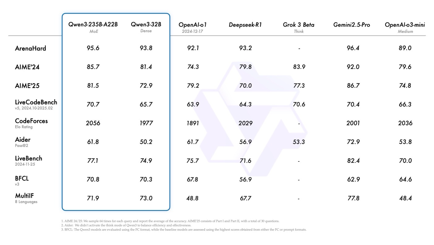 All Qwen3 models – including dense models (0.6B, 1.7B, 4B, 8B, 14B, and 32B parameters) and MoE models (30B with 3B active, and 235B with 22B active) – are now open sourced and available globally.