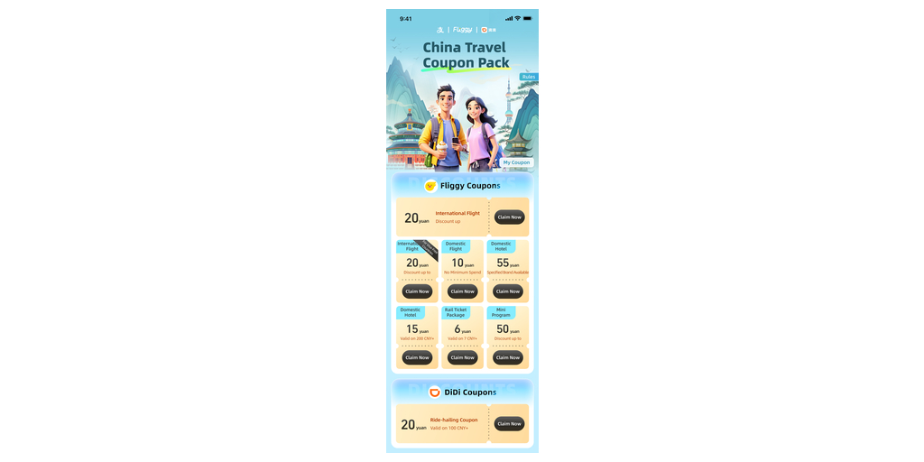 Alipay’s China Travel Coupon Pack provides each inbound tourist special offers worth RMB 200 (USD 28), applicable to a wide range of scenarios such as flights, hotels, train travel, and shopping. Additionally, international tourists eligible for 72-hour or 144-hour visa-free transit, as well as those from countries with mutual visa exemption agreements with China, can access flight discount coupons from the pack.