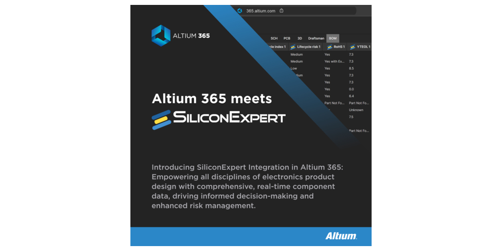The SiliconExpert integration will be available to Altium 365 users later this month. For more information, visit https://www.altium.com/altium-365/supply-chain/siliconexpert.