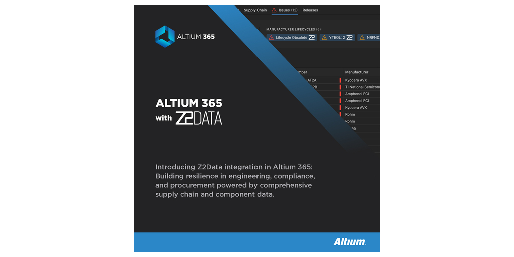 This integration will provide Altium 365 users with direct access to Z2Data’s extensive supply chain and component database, enabling them to build resilience in engineering, compliance, and procurement.