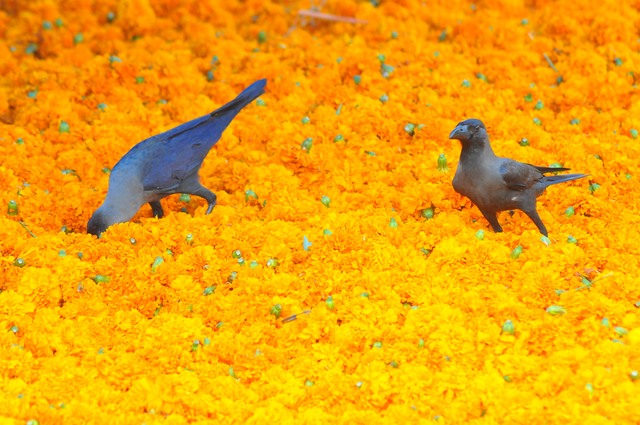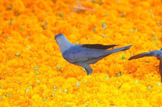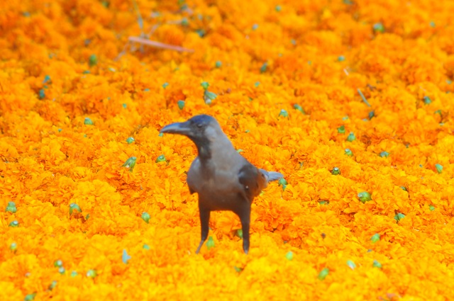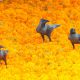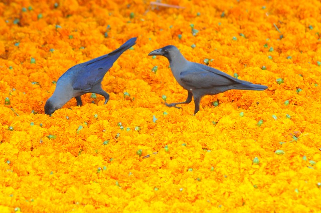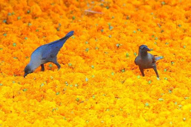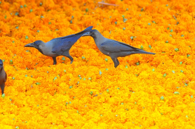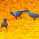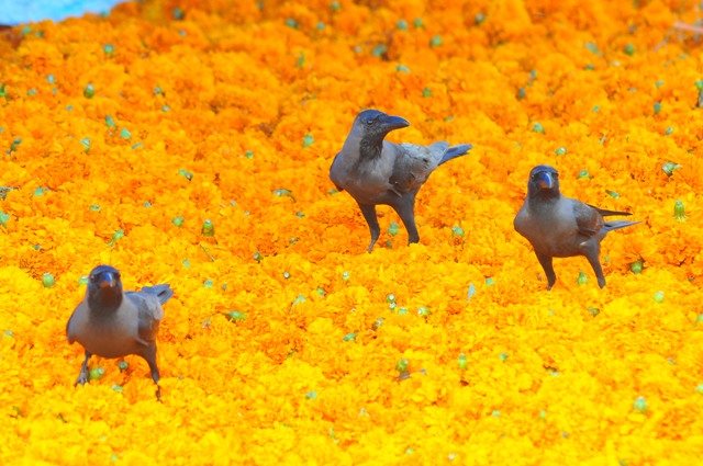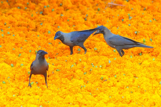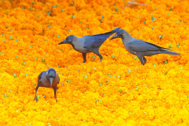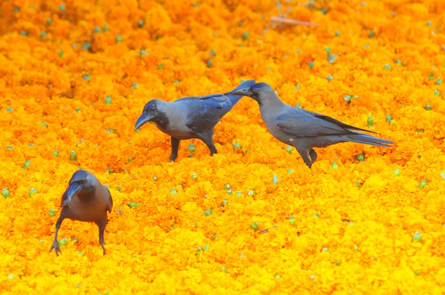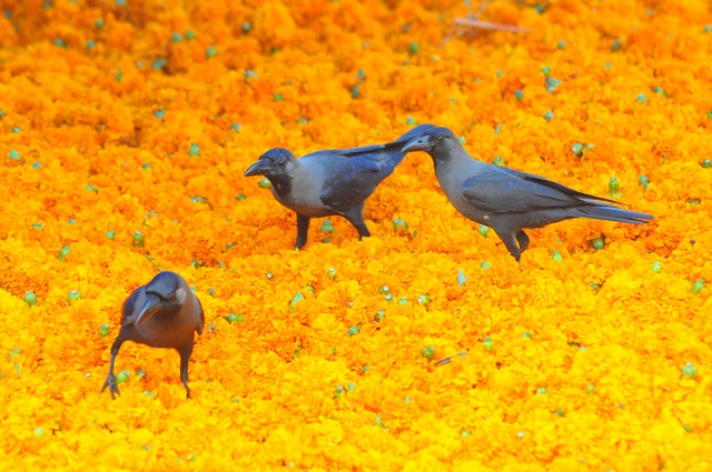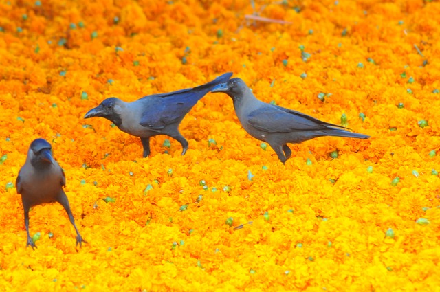 Crows are eating their favourite marigold flower. �These are the beautiful views taken by Johnson .