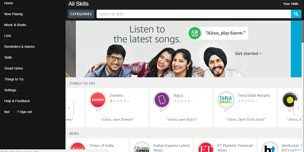I tried enabling Saavn Skill but unfortunately it was not working as expected. It always prompt by saying This service is not enabled in your region. May be the skill are still now in working mode.