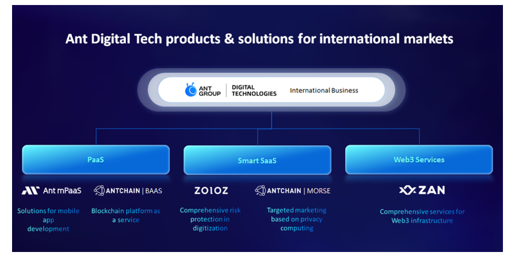 So far in these markets, Ant Group Digital Technologies has provided customers with advanced technology products and solutions, including: