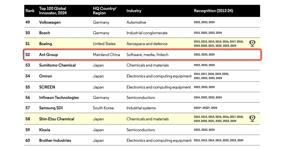 HANGZHOU, China–(BUSINESS WIRE)–For the third consecutive year, Ant Group, a global digital technology provider, has been recognized as a Top 100 Global Innovator™ 2024 by Clarivate™, a global leader in connecting people and organizations to intelligence they can trust to transform their world. This recognition reaffirms Ant Group’s ongoing commitment to innovation excellence in technologies such as artificial intelligence (AI) and blockchain.