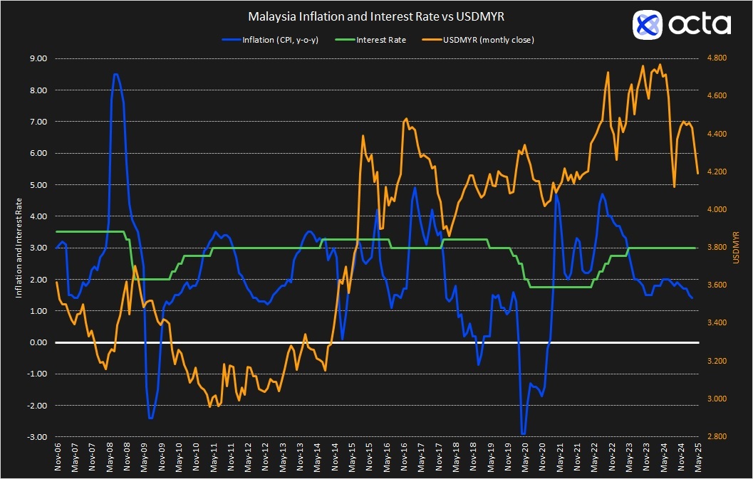 BNM has kept its OPR stable since May 2023, when it surprisingly raised it to 3.00% in response to persistently high inflation amid solid household spending and tight labour market conditions. Since then, the economy has not really slowed much, so BNM has kept its base rate unchanged for almost two years now. This stance distinguishes it from its regional counterparts – Bank Indonesia, the Bank of Thailand, the Philippine central bank, and the Bank of Korea – all of which have lowered interest rates to stimulate economic growth.
