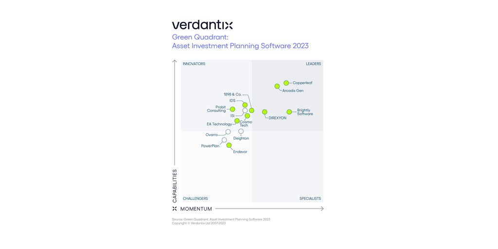 CARY, N.C. & LONDON–(BUSINESS WIRE)–Brightly Software, the global leader in intelligent asset management solutions, today announced it has been recognized as “a Leader” in the Verdantix Green Quadrant®: Asset Investment Planning Software 2023 report. In the report, Brightly is acknowledged for delivering advanced, all-around AIP software capabilities to the global market, including strengths in user interfaces, asset performance modelling, and long-term investment planning capabilities. The report also acknowledges Brightly’s momentum in financial resources, organizational resources, vision and commercial strategy, and partnerships.