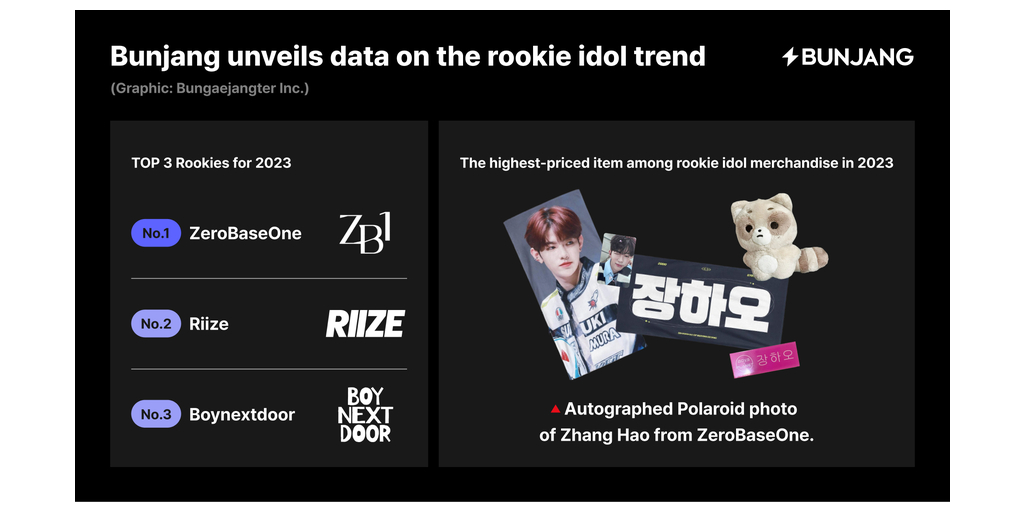 Meanwhile, the most expensive K-pop merchandise associated with newly-debuted idols was an autographed Polaroid featuring Zhang Hao, a member of Zero Base One, who secured the top spot in the final rankings of Boys’ Planet. This item gained considerable attention due to its rarity, marked by the inclusion of a handwritten signature, and was sold for KRW 1.9M (USD 1.4K) via BungaePay.