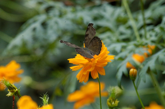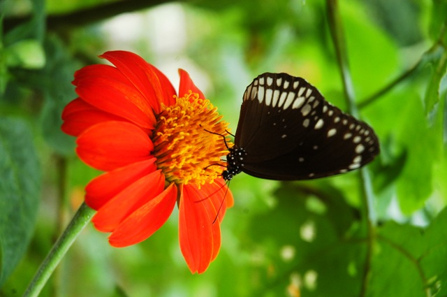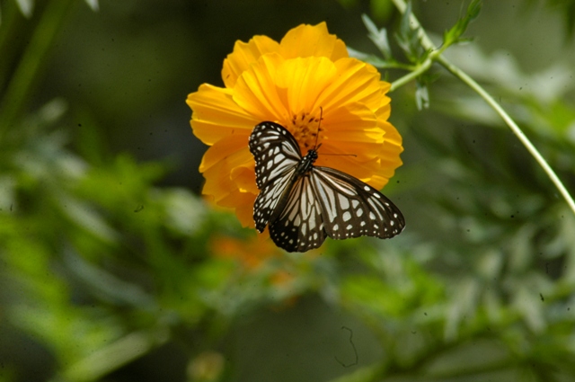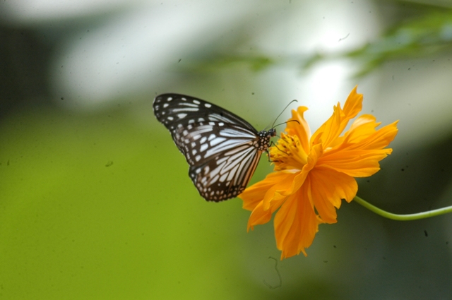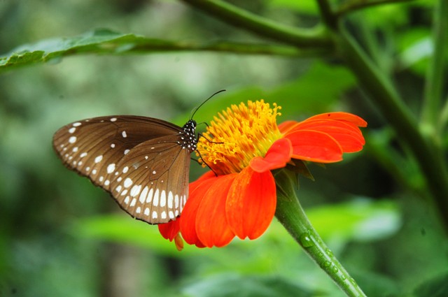Butterflies are part of the class of insects in the order Lepidoptera, along with the moths. Adult butterflies have large, often brightly coloured wings, and conspicuous, fluttering flight.