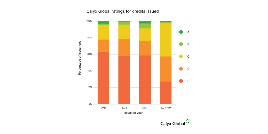 LEADVILLE, Colo.–(BUSINESS WIRE)–An analysis of the state of quality in the voluntary carbon market gives early indications that the market is moving towards higher integrity. The report, by carbon credit ratings platform Calyx Global, integrates data on market trends with Calyx Global’s 500+ ratings to provide unique insights on how efforts to improve market integrity are faring.