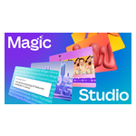 Magic Studio is a first of its kind suite of AI tools built on proprietary models, in partnership with industry leaders, and through its rapidly growing app ecosystem. Magic Studio infuses the best of AI across every part of Canva as the first and only truly all-in-one and interoperable AI design offering on the market. When time is short and productivity cannot be compromised, Magic Studio can generate compelling content, fast-track first drafts, automate mundane tasks, design like an expert, massively accelerate the creation process, and much more.