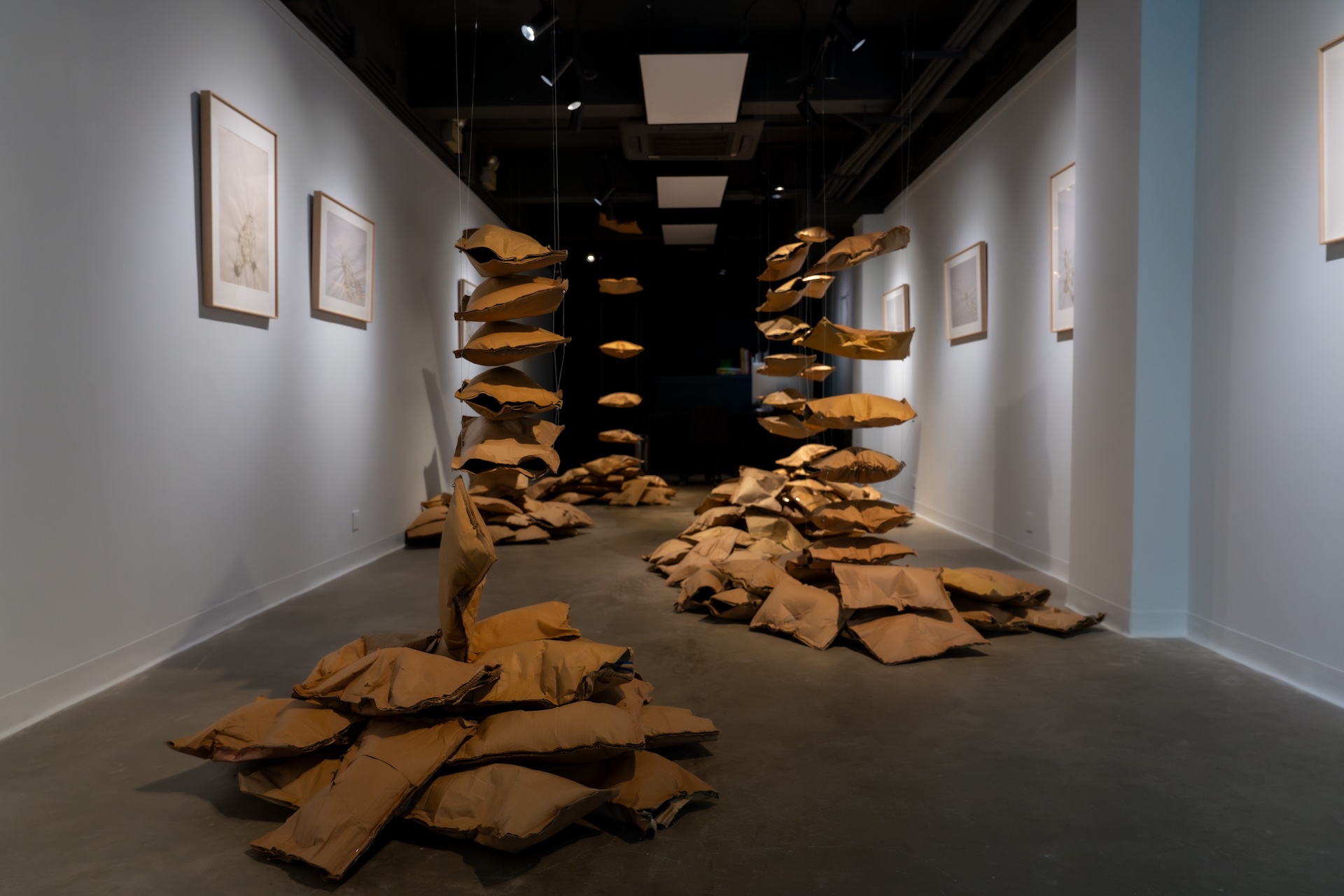 | “So.call Mobility” “So.call Mobility” (a play on “social mobility”) features 180 cardboard pillows suspended in six layers. The number 180 symbolizes the maximum days homeless individuals can stay in temporary shelters in Hong Kong, after which they face immense challenges finding housing due to high rents. The increasing gaps between the layers represent the widening wealth gap and diminishing social mobility. |