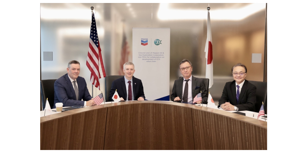 The main objective of the MOU is to evaluate the feasibility of the CCS value chain, including capture of CO₂ emitted from industries located in Japan, including JX’s affiliates, and transportation by ship from Japan to Chevron’s greenhouse gas storage portfolio in Australia. The collaboration will also explore the opportunity to develop suitable transboundary policies and the potential development of CO₂ storage sites in other countries in the Asia Pacific region.