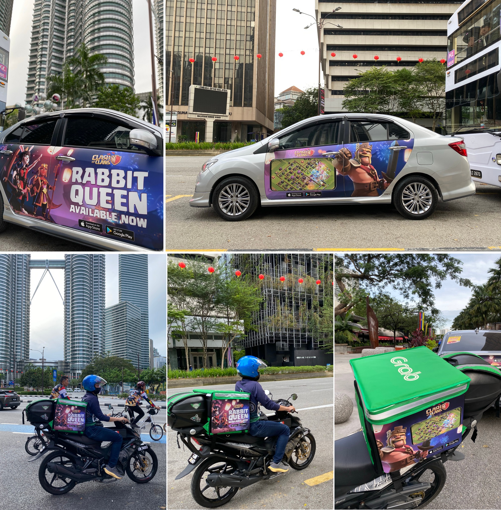 Except for multi-dimensional online exposure, Clash of Clans also conducted brand-new offline marketing in Malaysia during the Spring Festival of the Rabbit Year. The game’s new year-limited skins and event information appeared in the form of Grab vehicle body advertisements and Grab delivery box advertisements on the streets of Kuala Lumpur and Selangor. It is believed that Clash of Clans players would definitely feel the new year’s wishes that the game brings when “encountering” these posters.