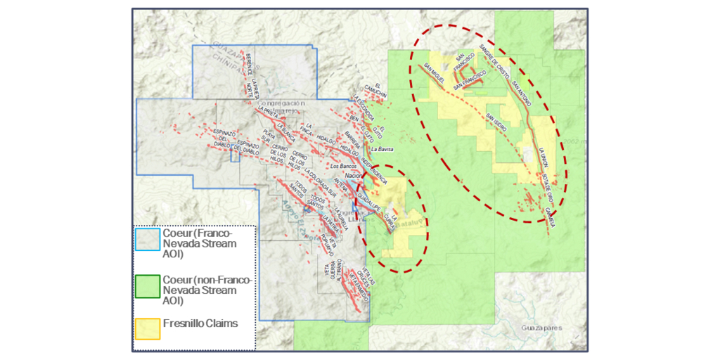“This transaction fills in two key strategic gaps in the large land package East of the Palmarejo mine which unlocks significant potential in areas unencumbered by the existing Franco-Nevada gold stream. Once complete, our land holdings outside the gold stream-encumbered areas will increase by nearly 20% and the overall Palmarejo complex will consist of a single nearly contiguous district spanning over 70,000 acres of highly prospective and underexplored ground in the heart of the prolific Sierra Madre Occidental,” said Mitchell J. Krebs, Coeur President and Chief Executive Officer. “In the near-term, we intend to pursue the southeast extensions of existing deposits that trend onto the claims, which provides opportunities to add to Palmarejo’s mine life and leverage existing infrastructure. Another near-term post-closing priority will be to integrate, update and potentially add to historic resources in the northeast area of the previously fragmented land package, which represents an opportunity to further boost Palmarejo’s overall mineral resources to the East.”