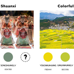 The campaign was focused on the characteristic buildings, cultural relics, and natural landscape of Shaanxi. In March, peach blossoms of Yulin meet with the color of Danqingzi. In October, trees in northern Shaanxi are pigmented with colors such as Chushuxinghuang. Diverse sceneries of Shaanxi in the 12 months a year were introduced and represented by different colors. Shaanxis charm was fully manifested in the change of color, such as the Yanhong, Anziyuanhong, and Songshuanglv of cultural relics, the Youcaihuahuang, Ganlanhuanglv, and Canglv of natural landscape, the powerful Xiyanghong, Yanhanhong, and Huoshanzong, as well as the grim Yanlan and Ganglan.