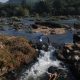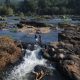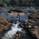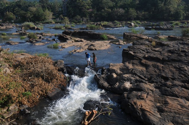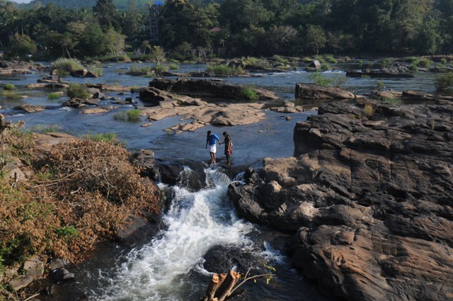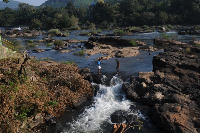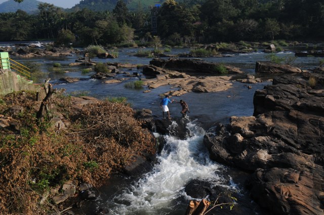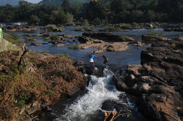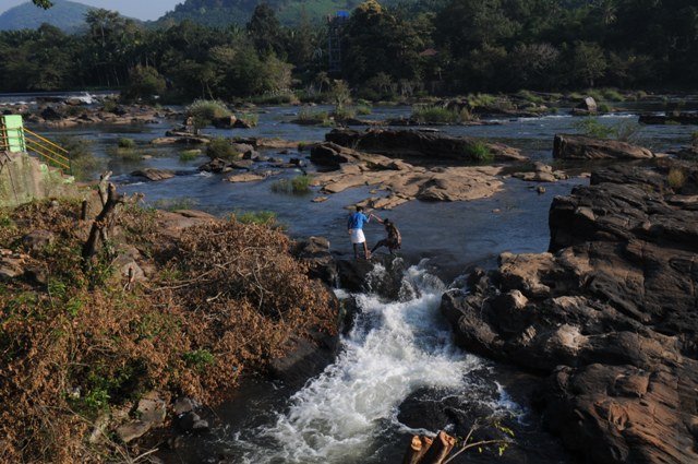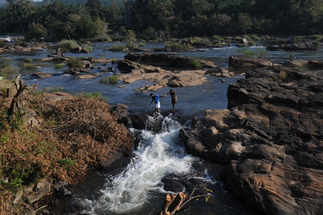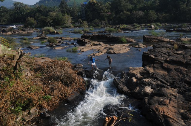 Crossing the River at Thumburmoozhi at Kerala