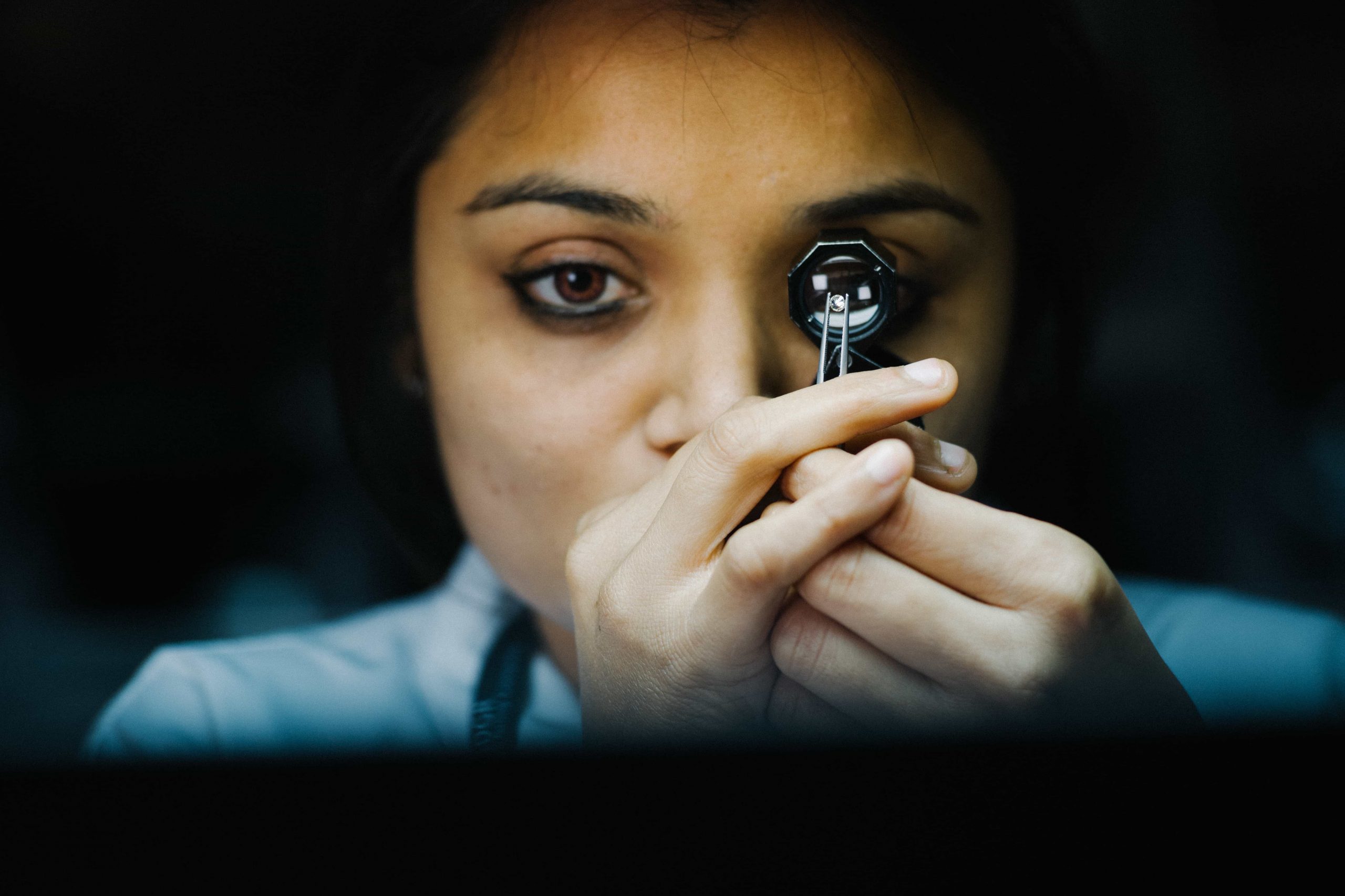 Once a natural diamond has been tested for integrity, it undergoes a rigorous grading process at DBIoD. First, a unique De Beers laboratory automatic colour-grading instrument, known as The Falcon, assesses the diamond’s color and fluorescence. Next, a grader assesses the diamond’s color and cut. Finally, a senior analyst integrates the information from both the instrument and the grader to make the final assessment and issue a formal grading report.