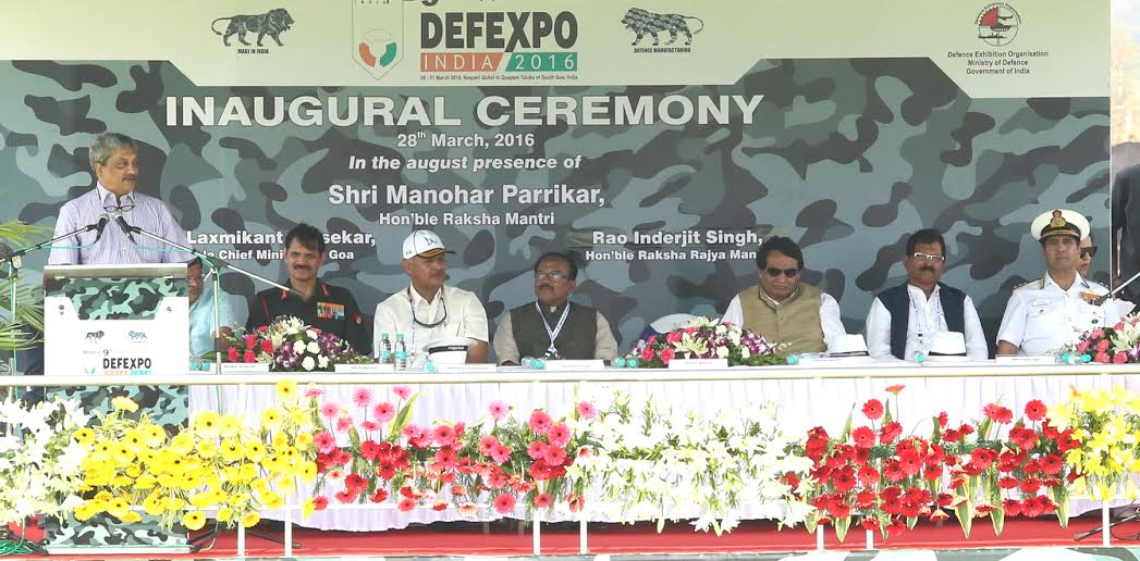 Defence Minister Shri Manohar Parrikar addressing at the inauguration of 9th Edition of Defexpo-16 at Goa on 28 Mar 2016